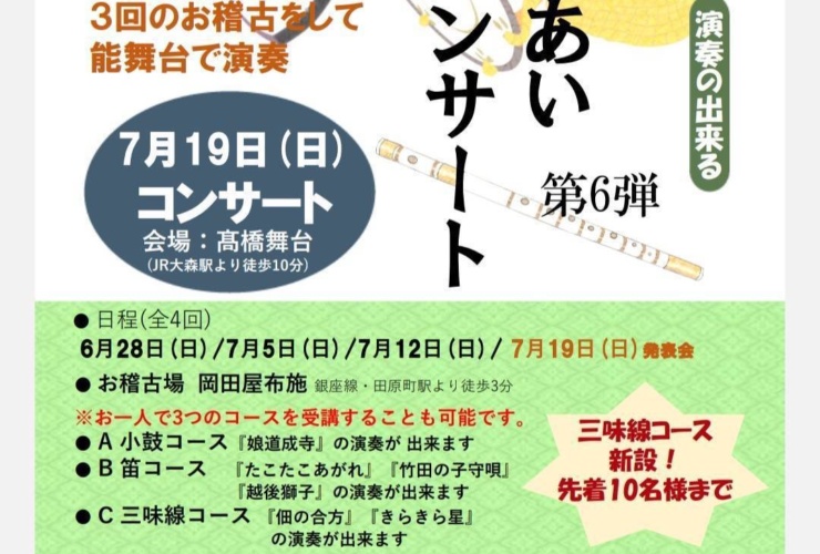 | その他 | 人数:最少催行人数…3名 / 定員…10名 服装・持ち物:動きやすい服装、あればバチ(なければお貸しします) 対象:親子でのご参加も大歓迎です!(3歳以上) |