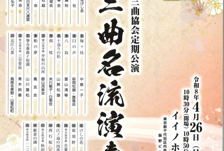 令和八年度 公益社団法人 日本三曲協会 定期公演 春季三曲名流演奏会